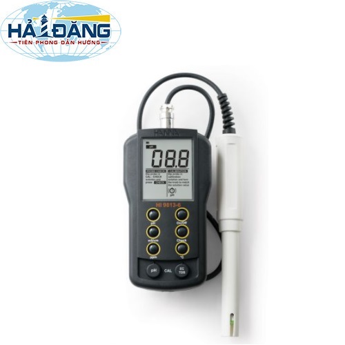 - Máy đo PH / EC / TDS / Nhiệt độ HI9813-6 là sản phẩm của hãng Hanna , đây là máy đo cầm tay chống thấm nước dùng để đo độ pH, độ dẫn điện (EC), tổng chất rắn hòa tan (TDS) và nhiệt độ chỉ với một đầu dò.. Máy đo giá cả phải chăng này lý tưởng cho các ứng dụng giáo dục và hiện trường.