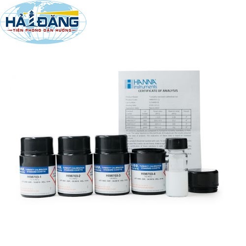 - HI98703-11 là một bộ chất lượng cao tiêu chuẩn hiệu chuẩn độ đục cho phép người dùng để xác nhận và hiệu chuẩn máy đo độ đục mét có thang đo từ 0 đến 1000 NTU. HI98703-11 bao gồm 4 cuvet với giá trị <0.10, 15.0, 100, và 750 NTU